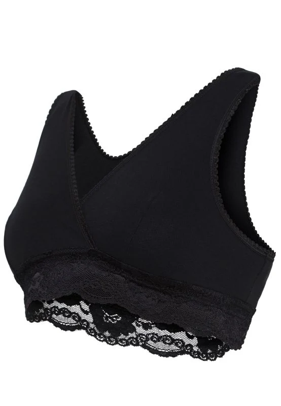 De bh heeft een slim crossoverdesign, zodat je met één hand gemakkelijk toegang hebt tot je borst. De cups schuiven soepel opzij zonder dat iets knelt of in de weg zit. Dankzij het haak- en sluitingsvrije ontwerp is deze bh ook ideaal om ’s nachts te dragen: geen harde delen, geen irritatie, alleen pure zachtheid.