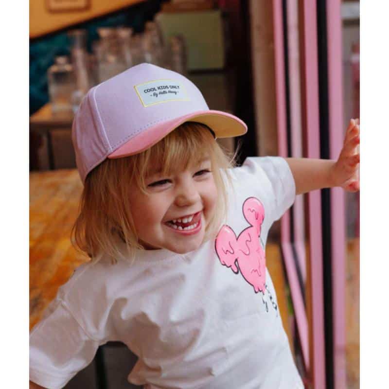 Hello Hossy Cap Mini Purply. Te gekke pet van Hello Hossy. De pet is lila met een roze / gele klep. Op de voorkant staat by Hello Hossy en “COOL KIDS ONLY”.