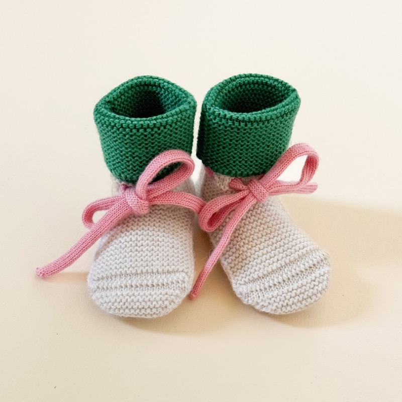 hvid booties cream grass. Deze baby slofjes van huid hebben een ideale pasvorm doordat ze een echte hielvorm hebben. Ze blijven ook perfect aan het voetje zitten door het lintje dat je kan knopen. Door het wrijven van de voetjes van de baby, ontstaat er in het begin pluis. Deze pluis gaat volledig over na enkele malen te dragen. En vanaf nu in 2 maten te verkrijgen. Merinowol jeukt niet en is antibacterieel en daarom perfect geschikt voor kinderen met eczeem of een gevoelige huid. Materiaal: