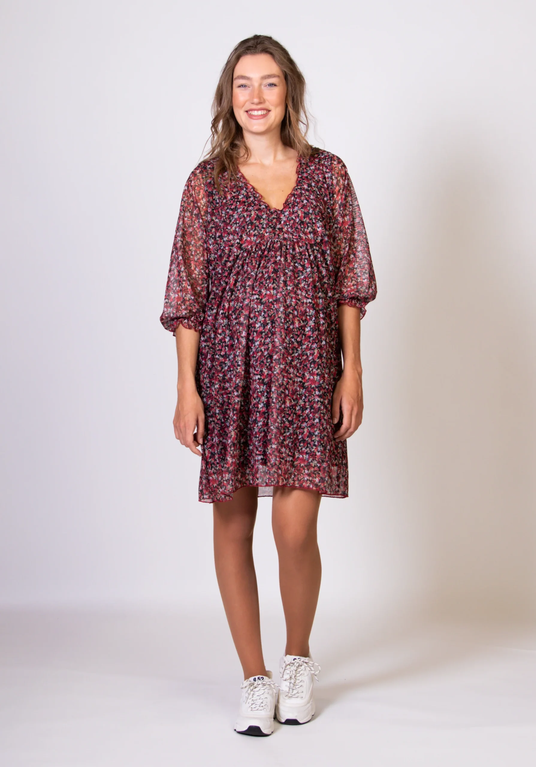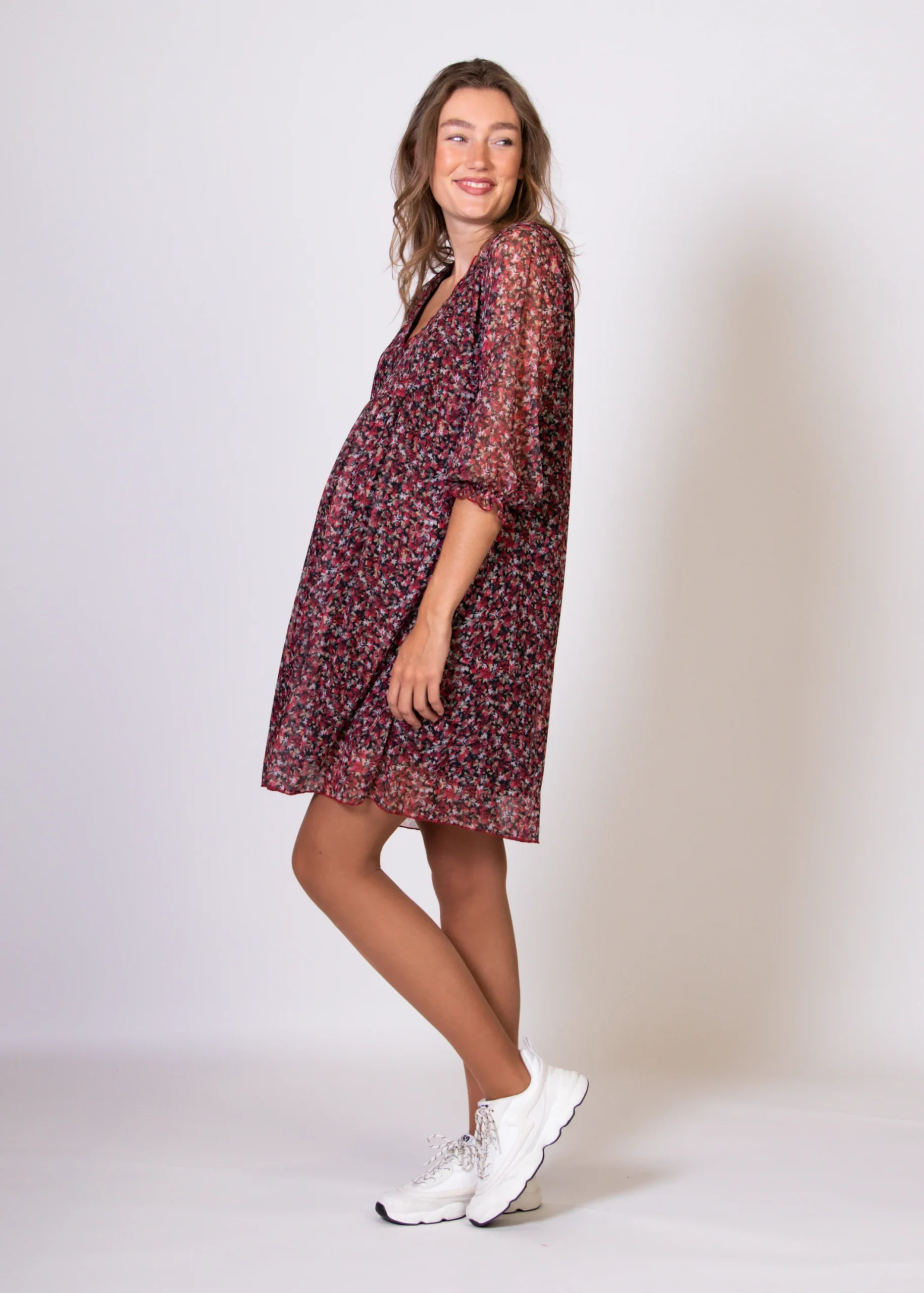 De Love2Wait Flower Dress is een romantische, stijlvolle jurk die perfect meebeweegt met jouw zwangerschap. Gemaakt van een lichte, soepelvallende stof met een prachtige bloemenprint in rood en zwart, straalt deze jurk elegantie uit zonder in te boeten op comfort. De jurk heeft lange mouwen, een vrouwelijke V-hals en is volledig gevoerd, zodat ze zacht en comfortabel aanvoelt op je huid.